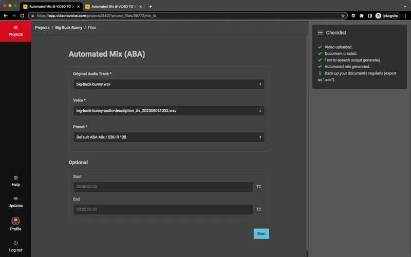 This way, the mixed audio-described video meets official loudness standards and is ready to broadcast.