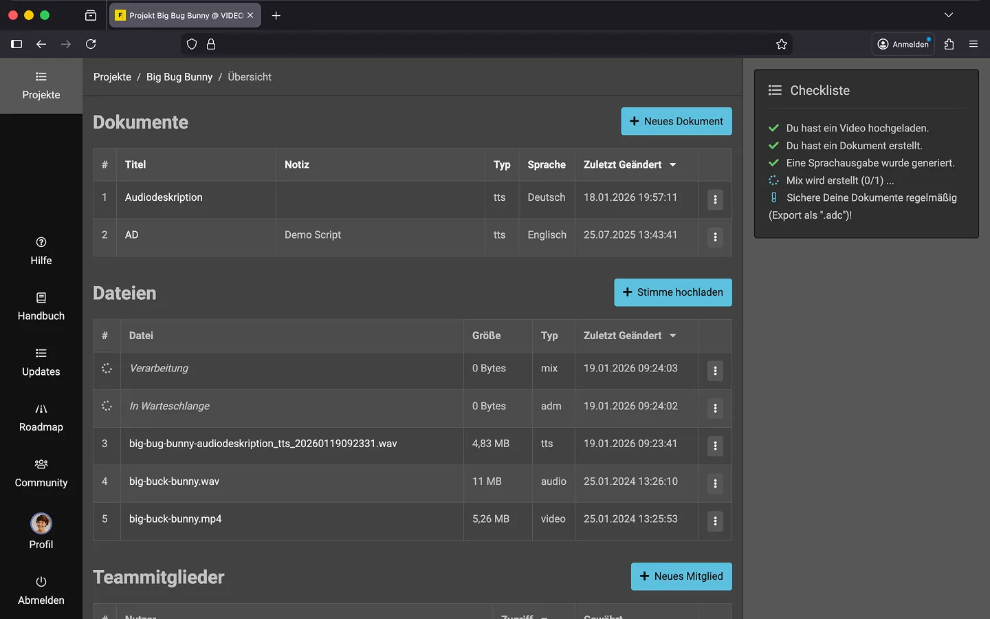 Details dazu, wie Du eine TTS-AD erstellst, findest Du in den Kapiteln „Sprachausgabe“ und „Automatisierter Mix“.