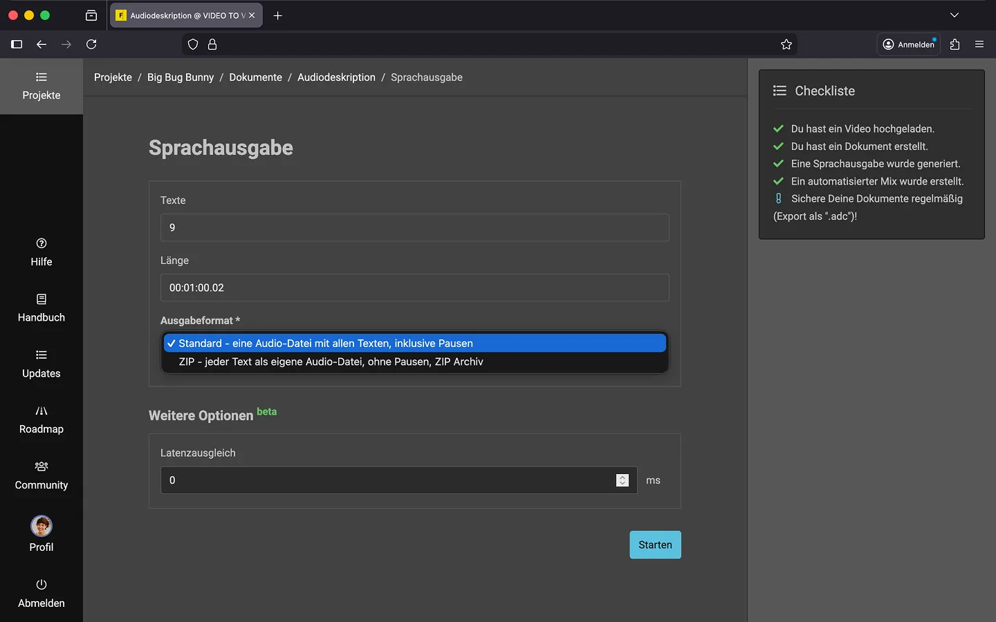 - Entscheide Dich für ein Ausgabeformat.