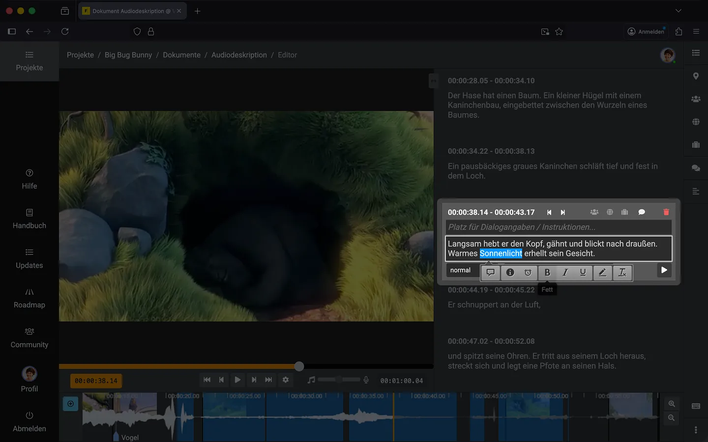 Du kannst im Beschreibungsfeld den Text formatieren.