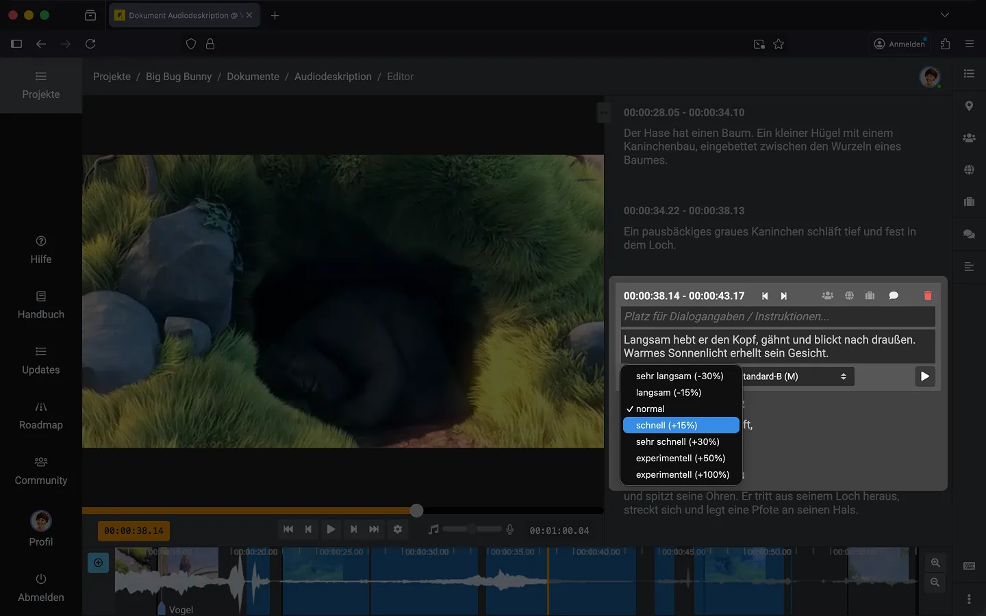 Du kannst für jeden Textblock die Sprechgeschwindigkeit anpassen.
