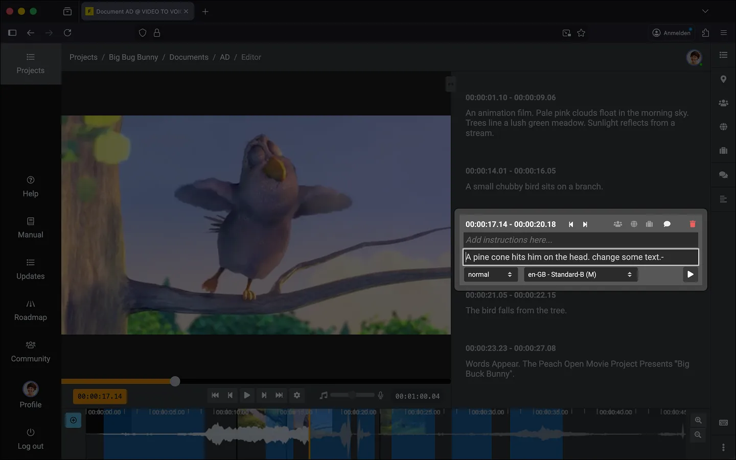 - Set the voice for the text block. Useful if you are working with subtitles in the project.