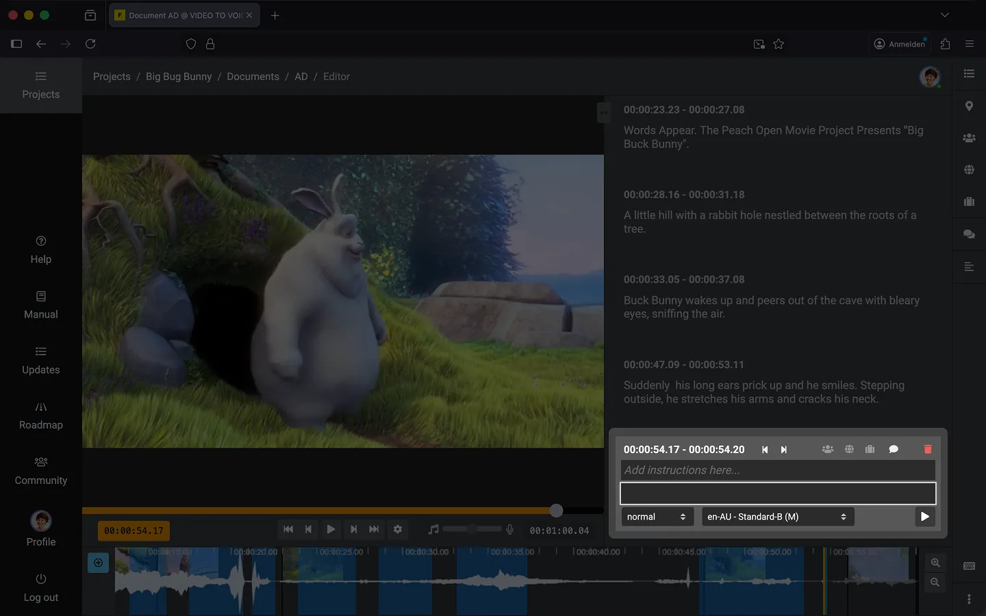 The easiest way to add a text block is by pressing the “Enter” key. Alternatively, you can click the “+” icon on the timeline.