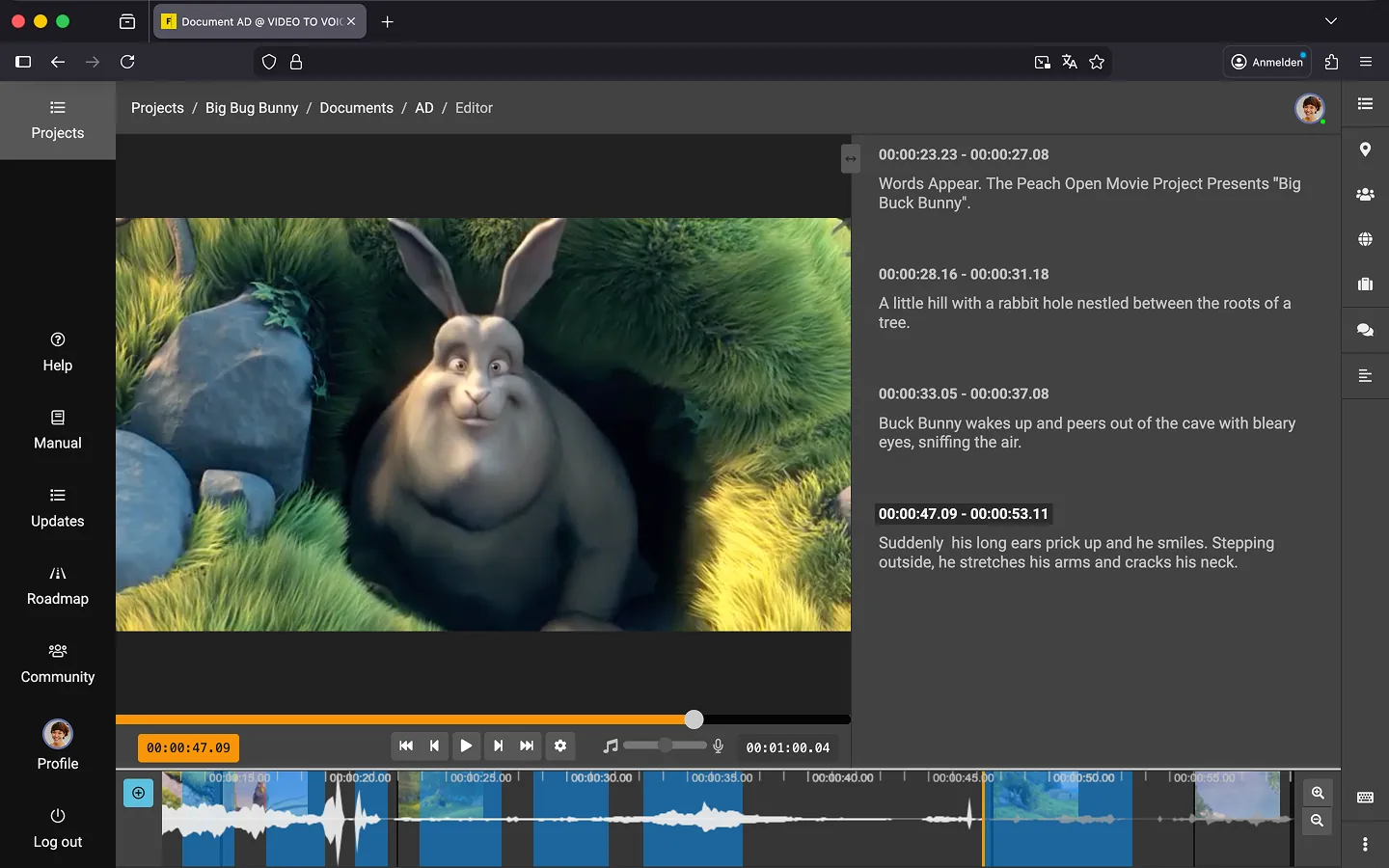 Discover everything you need to know about our text editor for audio description. Ready to dive in? You can explore Frazier’s features or jump right in and try it for yourself. Take a moment to stretch, and let’s get started!